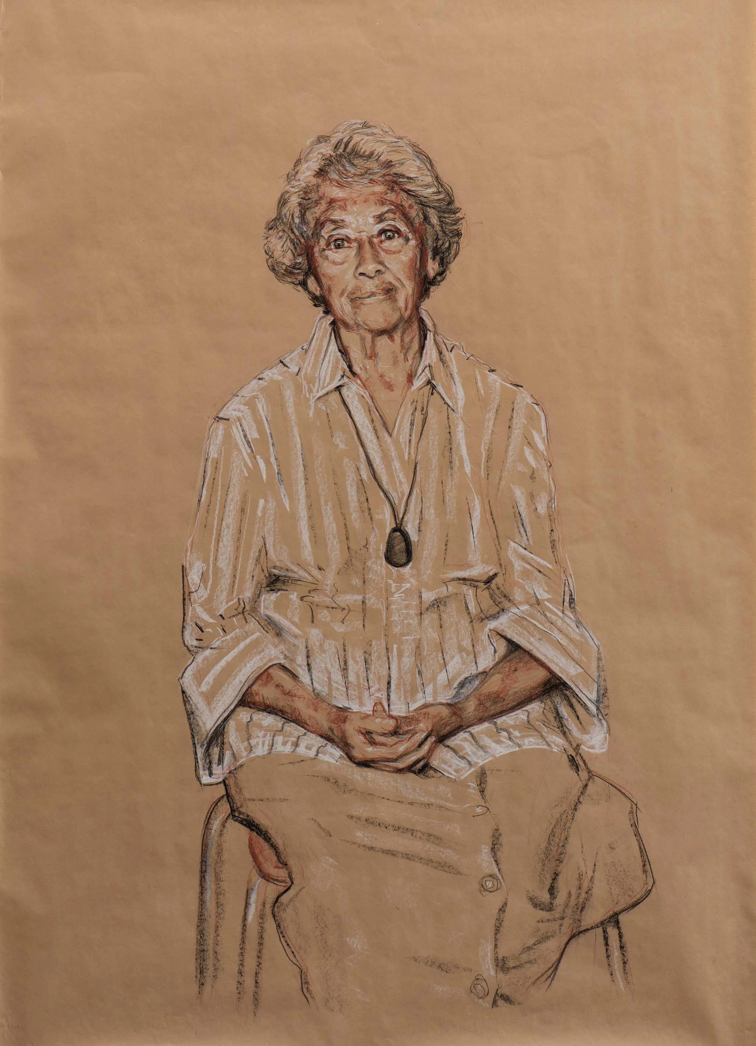 In terms of composition, Lynn says he felt ‘compelled to create a sense that while she seems located in a certain space, she is simultaneously rising out of that into a kind of universal space. This is probably why I left the background more like an indication, something ephemeral, whilst making her more distinct. As it turned out, this is a very natural and attentive working pose for her, which combines contemplation and action.’